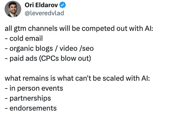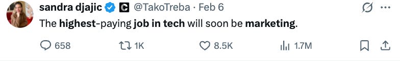 i’ve also seen multiple posts that are calling the fact that marketing jobs are about to be the highest-paying jobs in tech. why? because it’s going to come down to taste, curation, and brand building. the question at the top of every marketers mind is ‘why should anyone choose our company to do business with in our industry.’ the answer? brand. this continues to strengthen my prediction that i had at the end of 2024 about community roles starting to become one of the hotter opportunities in the industry, and i absolutely saw that this year between actual community-based roles and the resurgence of developer relations roles across the tech industry.